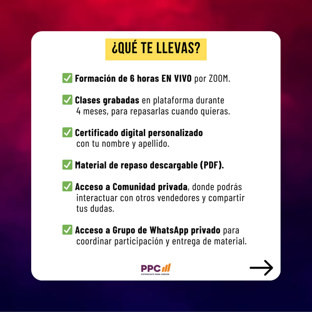 ✅ Acceso a las clases grabadas por 4 meses, para repasarlas cuando quieras.